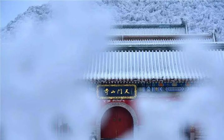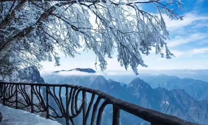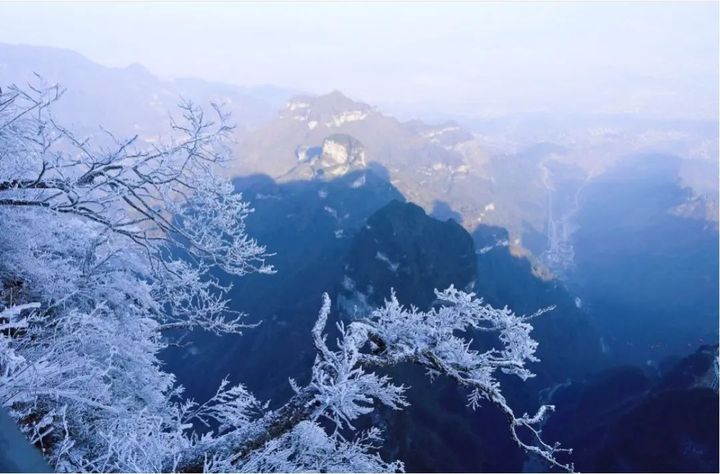 天門山頂,滿山樹木裝扮成玉樹瓊花