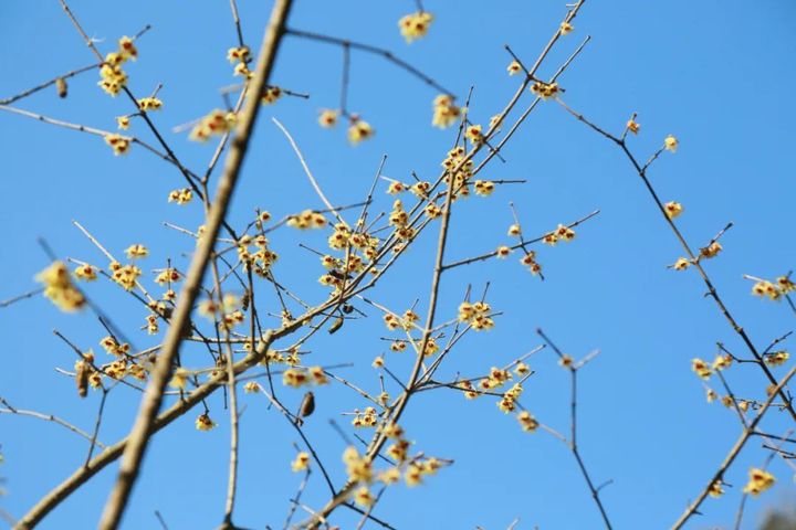 目前,太和梅花谷內野生蠟梅沿著山間小路盛放,行走在梅花開滿的山路上,拾階而上,看枝頭臘梅春意鬧,別有一番滋味。來到梅花谷,除了賞蠟梅花外,還可以品嘗景區特供的蠟梅花茶。