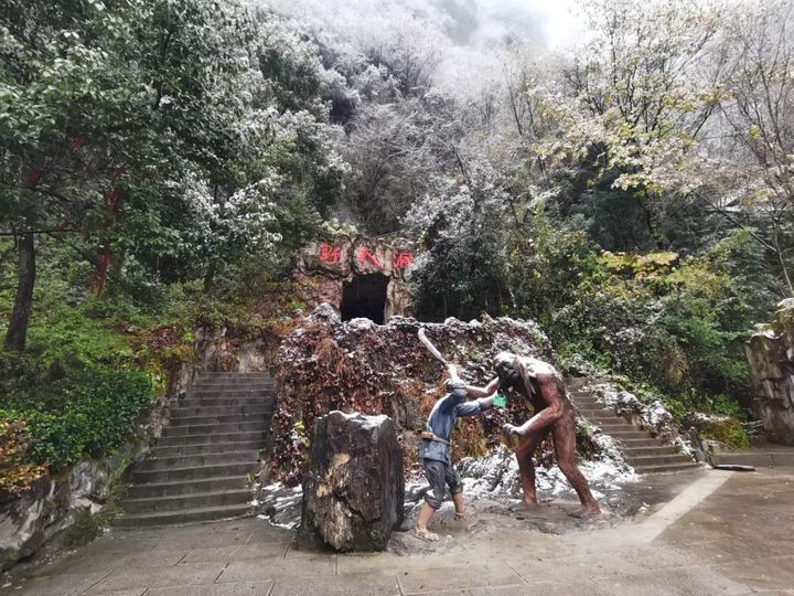每個季節,野人洞(谷)旅遊區都有獨特的魅力。冬季,雪花洋洋灑灑地飄落,堆積在野人洞(谷),世界都變成了銀白色。