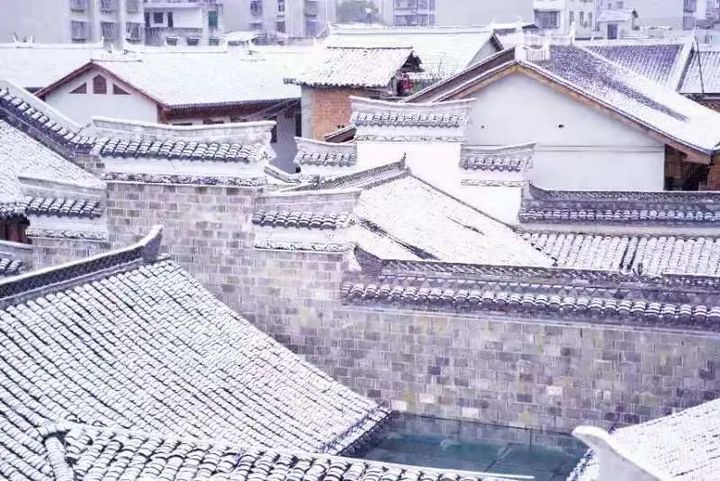 西關印象建築始建於唐,成於宋元,盛於明清,建築距今已有600多年歷史,老街全長1680公尺,雪中的老街,青瓦白牆掩映在白雪之中,顯得更加沉靜與厚重。