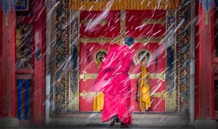 清晨,陽光透過霧氣,隱隱地照射從小路間喃喃而過的僧人身上,溫暖神奇。 紅與白的相遇是上天冥冥中的安排,將郎木寺的神秘展現得淋漓盡致。
