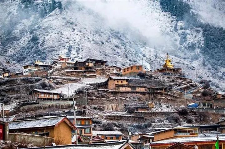 一落雪,扎尕那就變成了純凈無瑕的世界,白雪覆蓋了山林、藏寨,猶如一幅巨大的中國大陸水墨畫。