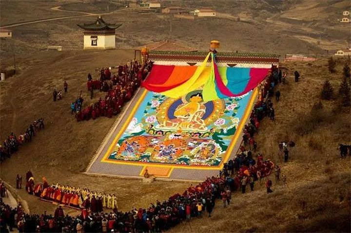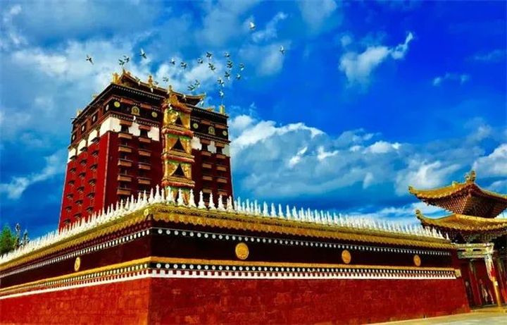 來合作怎麼能不與最有代表的地標米拉日巴佛閣合影一張? 這座佛閣是全藏區唯一一座供奉藏傳佛教各派祖師的名剎,建築總面積4028平方公尺,高40餘公尺,共九層。 融藏族堡式建築風格與佛閣式建築特色為一體,距今已有二百餘年歷史,整個佛閣內佛像多達1千余尊,被稱之為“藏傳佛教博物館”。