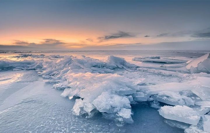 在冬季寒冷中變成冰上雅丹