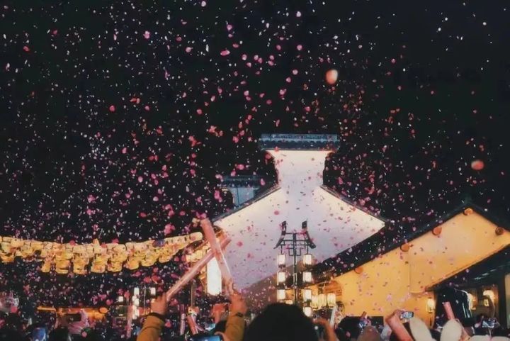 造雪機噴出洋洋灑灑的“今冬雪”,身著漢服,雲鬢花顏的遊客提燈映雪,一如回到落雪的千年前。