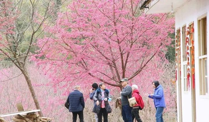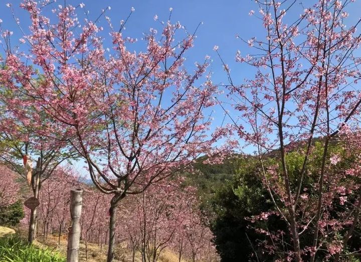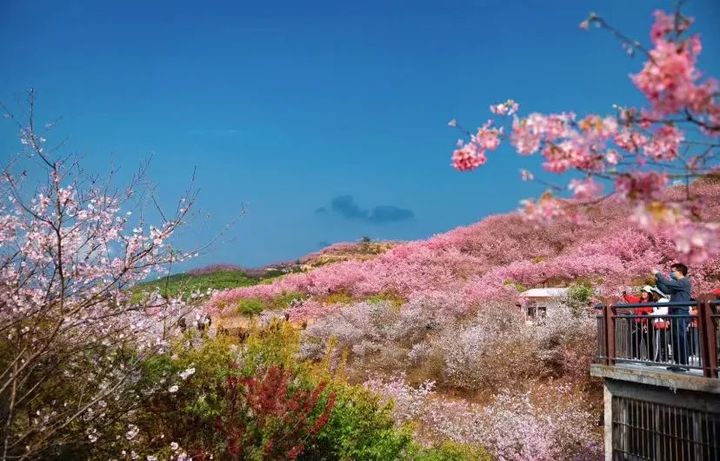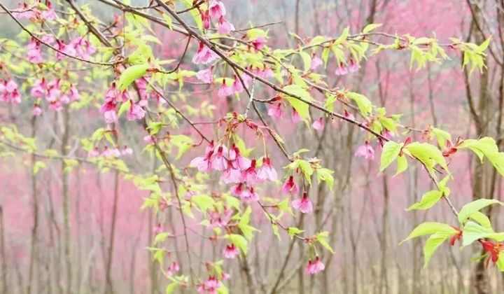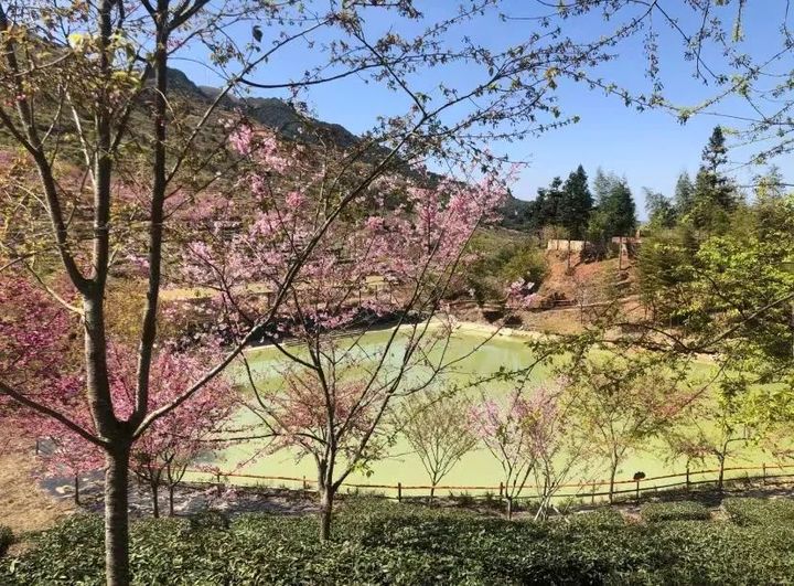 生長於900多公尺高山,1300多畝的粉色花海,40多個不同品種的櫻花。搭配著生態茶園、千年古寺、原始森林、高山草甸。在這裡遊客們可以看到人與自然和諧相處的最完美體現。