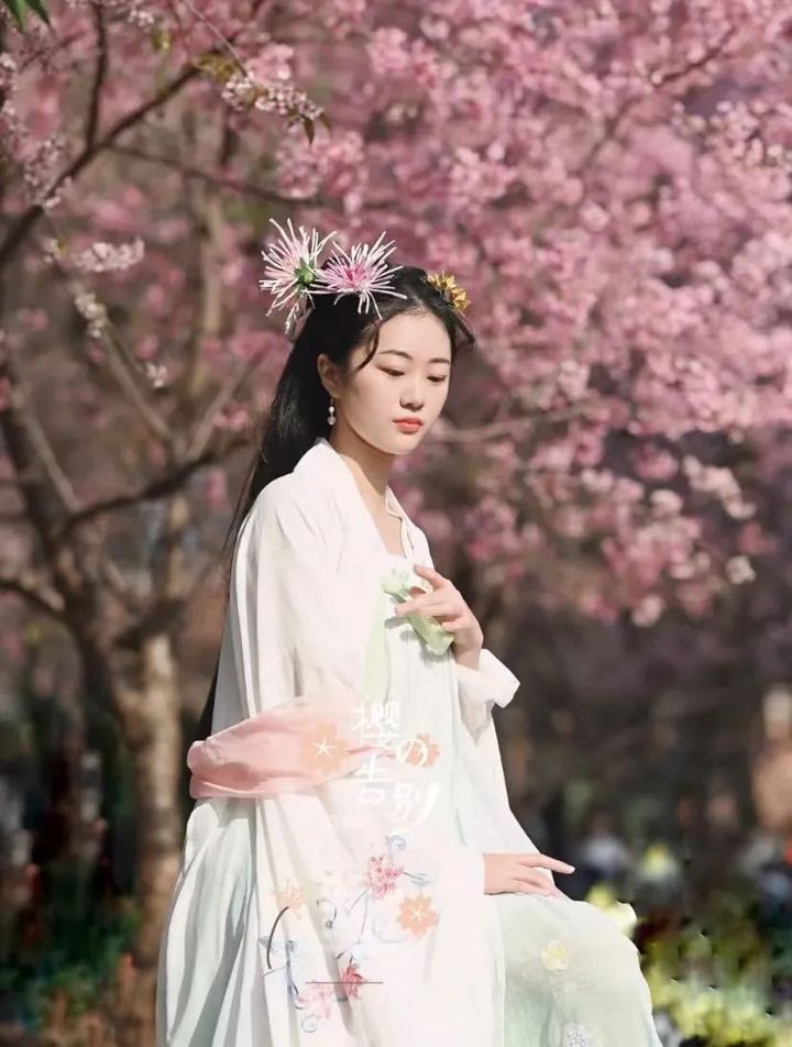 一簇簇櫻花,密匝匝地掛滿枝頭,花瓣完全舒展過來,肆意向世界展現它的美好,讓人看一眼就為之迷醉。還有掩映在櫻花下的網紅紅牆,漢服一穿,古典大片信手拈來。