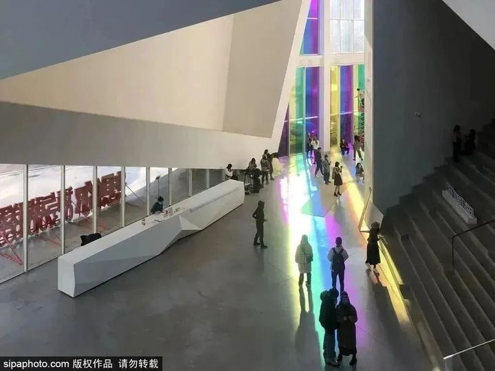 陽光充足時,光會透過彩虹玻璃窗照到地面,將彩虹投射在每一個駐足於此的人身上,或明亮或柔美,賦予了這個空間獨特的夢幻感。打卡拍照後還可以在美術館裡看看展,沉浸式感受這裡的美學氛圍。