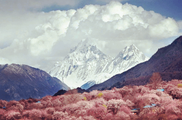 每年三四月,林芝一改往日的高冷形象,變得妖嬈起來。 和聖潔的人間凈土所相匹配的,就是那一片粉紅,鋪滿山坡,伸向河谷。