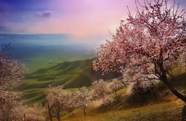 四月的伊犁,草長鶯飛,牛羊遍地,千萬株的杏花盛開,紅粉綴枝,香風漫漫,燦若雲霞。 身處其中,恍若仙境。
