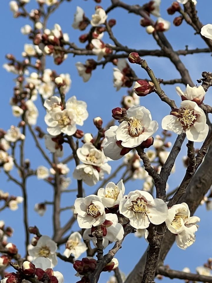 雪白的梨花在藍天的映襯下顯得更加美麗動人。微風吹過,似雪的花瓣飄落,還帶著一股清香,沁人心脾。