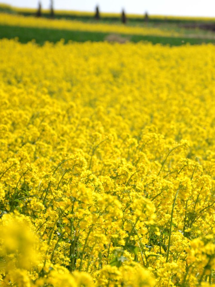 阡陌之間,油菜花鋪展蔓延,“伸”向天邊,連片盛開的油菜花,在陽光照射下,亮黃耀眼。