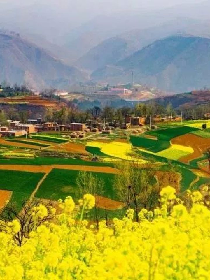 3月中下旬,大坪村通往青溝水庫兩側,和水庫附近嶝嶝峽的數十座山梁上遍佈油菜花,放眼望去,一片片金黃的油菜花隨風飄動,平日裡的浮躁頓時獲得了平靜,仿佛這時只有天空,大地、油菜花和自己。