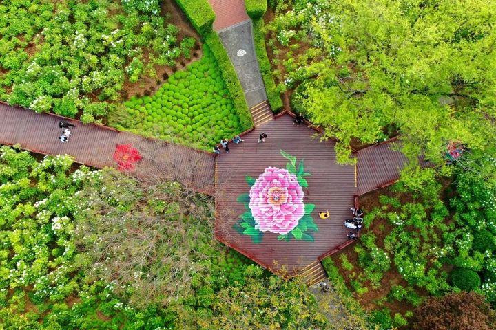 每年四月,隋唐城遺址植物園牡丹盛開,遊人如織,共賞牡丹國色天香。