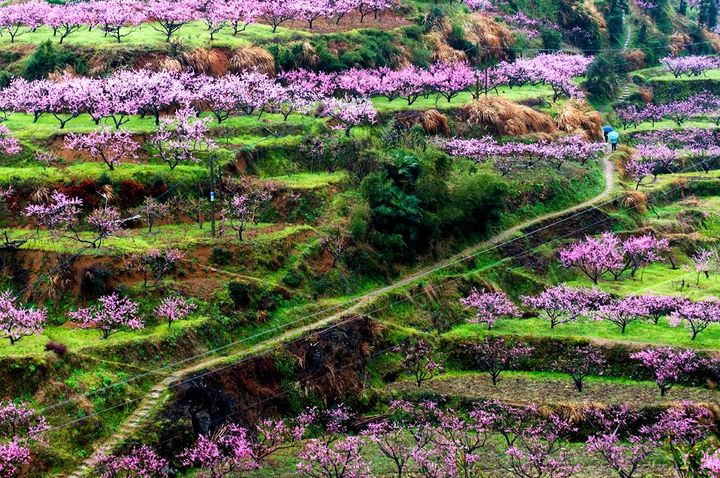 桃之夭夭,灼灼其華; 十里桃林,唯有仙渡。 藏在蓮都的仙渡鄉,總是被人們形象的喻為“神仙度假的地方”。 地處海拔較高山地,這裡常年雲霧繚繞,使得花期時間加長。 春雨一落,整片桃林更是宛如人間仙境。 這裡每年都會舉辦桃花節,整片整片的桃花燃燒在山城裡,讓人魂牽夢縈。