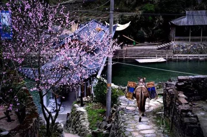這個被稱為里安“香格里拉”的幽靜古村,坐落於海拔700多公尺大山深處。 春天桃花綻放,整個村莊都沉浸在一片粉色中,石頭鋪成的小道蜿蜒曲折,清澈的溪流從樹邊穿過,桃林藏在其間,與自然美好的風光交相輝映,處處都透著脫俗的仙氣。