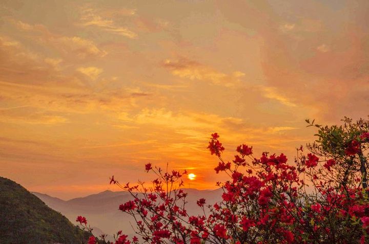 作為遂昌海拔最高的鄉鎮,高坪鄉原是一個僻靜的山間小城,可每年一到5月花開時節,這裡便燃起了一片“火海”,處處人聲鼎沸。 山野之間滿是怒放的杜鵑花,爭奇鬥艷,連綿30多公里佔領了整個山崗,場面十分壯觀。 到達山頂,足足需要一個半小時,漫山遍野的紅色撲面而來,是驢友理想的宿營地、野餐地。