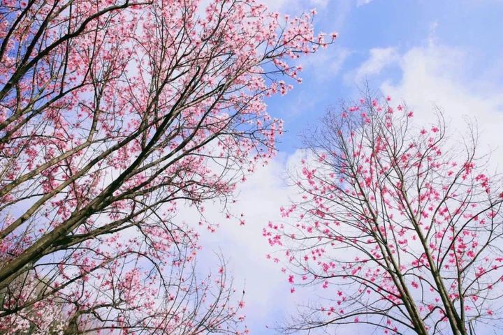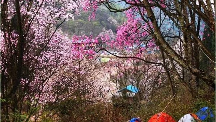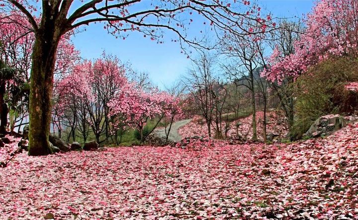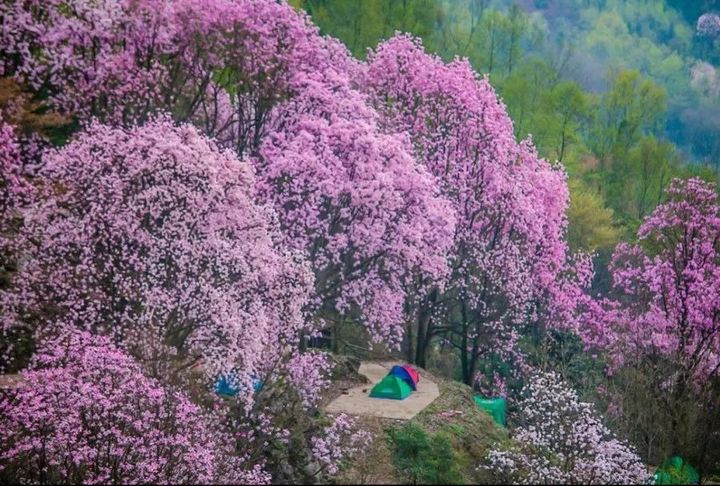 點點花瓣,片片花香,辛夷花樹正如煙如霞般競相怒放,花開成海,流光溢彩,綿延數百里……