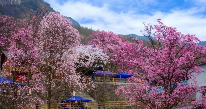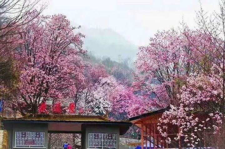 藥王谷擁有世界上最大的古辛夷花林,辛夷開花,每朵都是九枚,所有的花瓣都筆直向上挺立,豔而不妖,因而被譽為“滄桑之美、創世之最”。