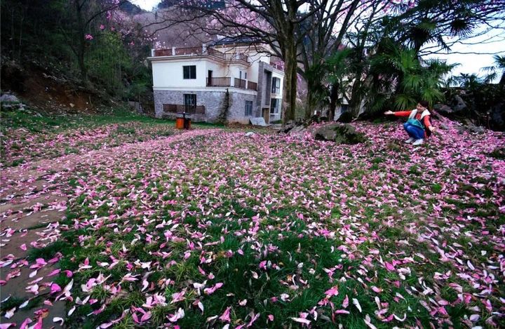 若有緣,還會遇到辛夷花雨。花瓣隨風飄落,揚起一陣陣的辛夷花雨、頭髮上衣服上處處都是鮮花,恍惚之間,分不清是人間還是仙境。