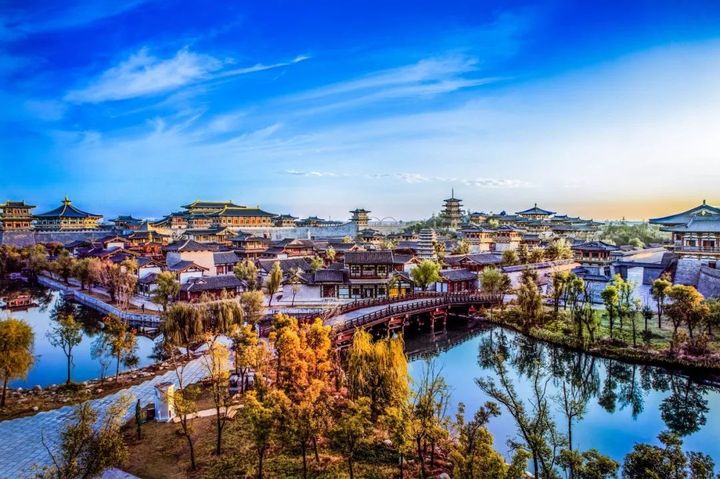 襄陽唐城影視基地位元於湖北省襄陽市,是一片以唐朝時期文化為背景的仿古建築群。 景區分為城樓、宮殿、街市、宅邸、寺院、水系六大片區,並引漢江活水入城,並通過8座橋樑與城內8條水系連接,形成「八水繞長安」的格局,步入其間,恍若走在千年前的大唐宮殿街巷。