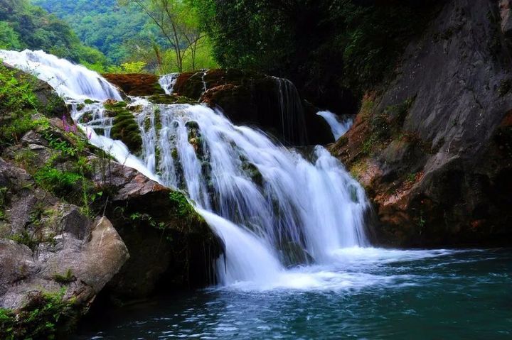 十堰市鄖縣的九龍瀑可是“網紅”景點,地處湖北省鄖縣大柳鄉餘糧村一組到南化塘鎮青岩村七組之間的群山中,方圓十幾公里,青山秀麗,綠水悠悠。九龍瀑分九疊傾瀉而下,一疊一潭,九疊九潭,曲折多姿。一座高大的攔河壩氣勢雄壯,壩頂九個龍頭噴出巨大的水柱,流落水潭之中,激蕩起無數水花。