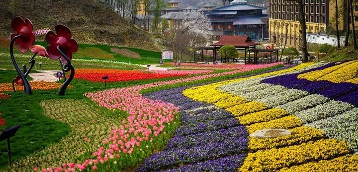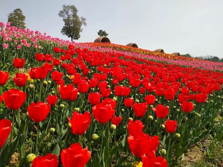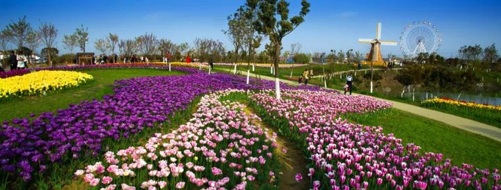 春天裡的金卉莊園,五顏六色的繁花勾勒出一幅絢麗的春景圖。四月,15.8公里的櫻花大道開出了一條“花路”,屬於春天的生機盎然撲面而來。300畝鬱金香,46種花色齊齊盛放,紅的、黃的、白的、紫的...數種色彩相遇,繽紛爛漫,令人驚歎。