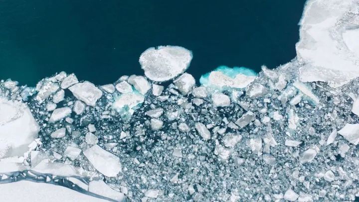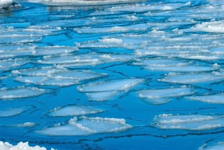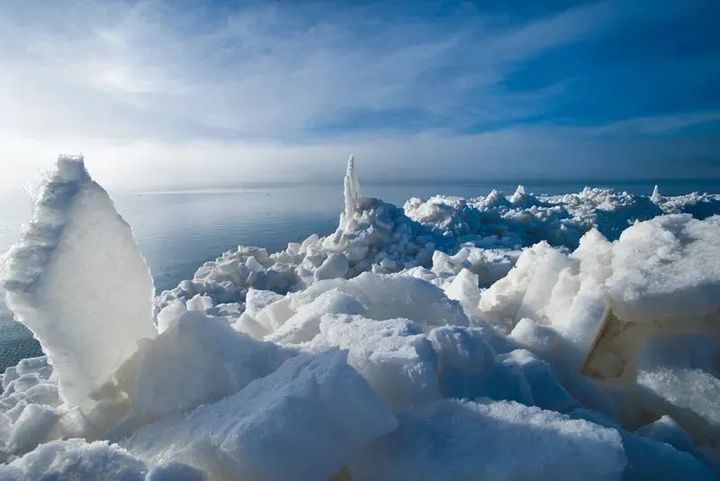 冰封的青海湖經過推動和撞擊後的開湖