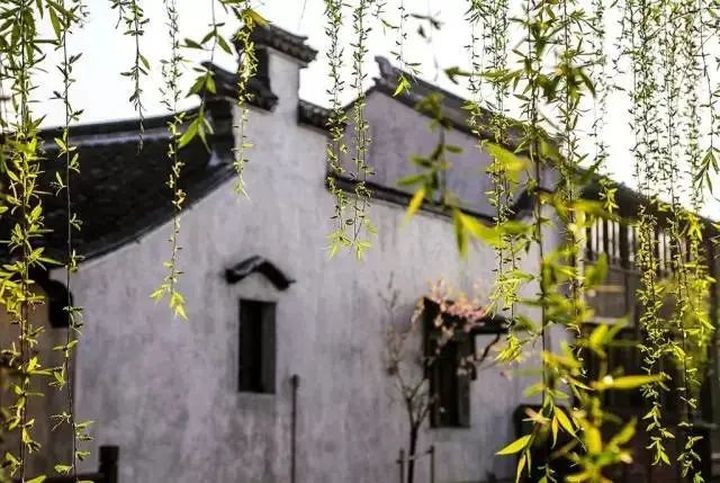 白牆黑瓦,與春色相輝映