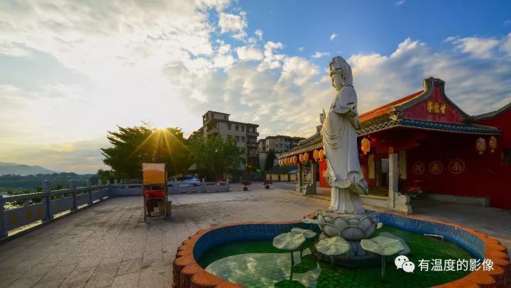 一座滴水觀音,在夕陽裡染成金色,俯瞰芸芸眾生,滔滔梅江水將菩薩的慈悲,緩緩載向遠方。