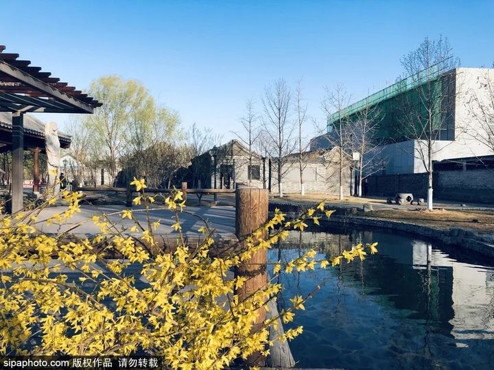 三里河公園並不大,卻擁有“水穿街巷,庭院人家”的美好景象。小橋流水,綠柳拂面,青磚灰瓦,柴扉深院……一切都那麼自然地流露著老北京的悠然情懷。