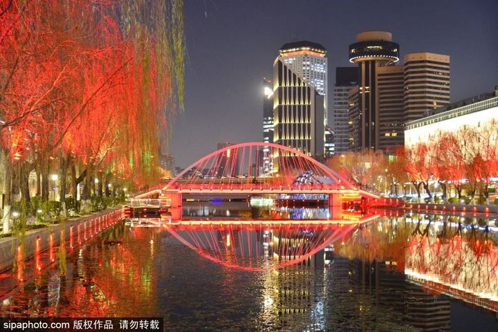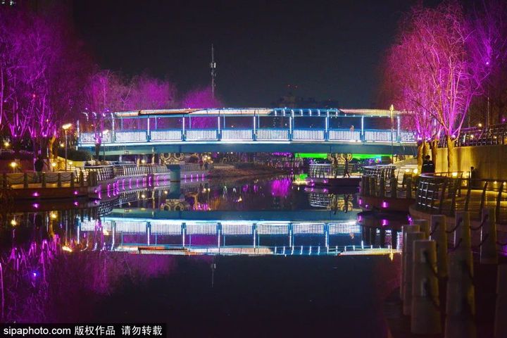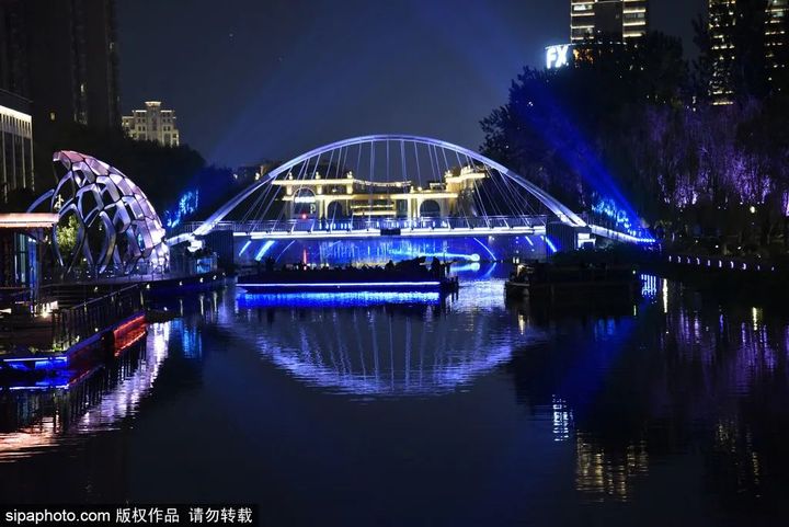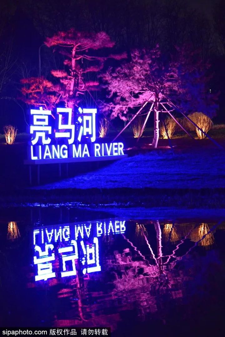 亮馬河在燈光的包圍下,優雅而靜謐,夢幻而溫婉。行走在岸邊,映入眼簾的風景在光與色的渲染下顯得愜意迷人。