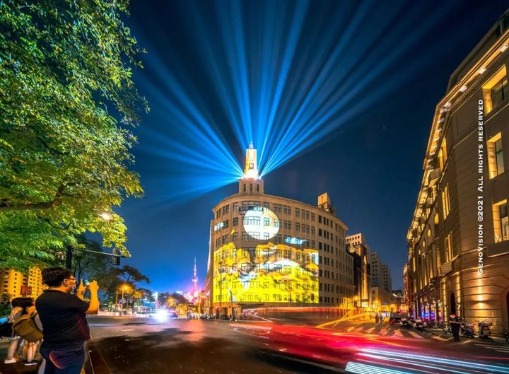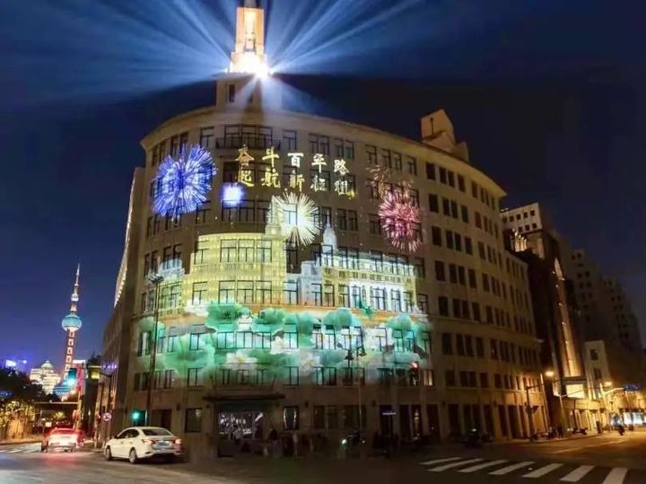 橋頭對面的光陸大樓、頤中大樓不定期上演文化創意投影秀。