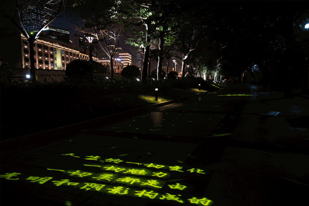 一是婆娑林蔭,遇光則潤,向光而生。將燈光與光束燈、霧森機等氛圍設備相結合,打造出光影搖曳的婆娑林蔭道投影景觀;二是冥想步道,承兩方智慧,造一處詩意。利用投影燈將“字”與“形”相結合,遊客在文字的“田壟”上一路用心走過,沐浴光的洗禮,感受溫馨、治癒心靈。三是秘境物語,在繁複忙碌的生活中邂逅這樣一處秘境,得以稍作停歇、安撫心緒。