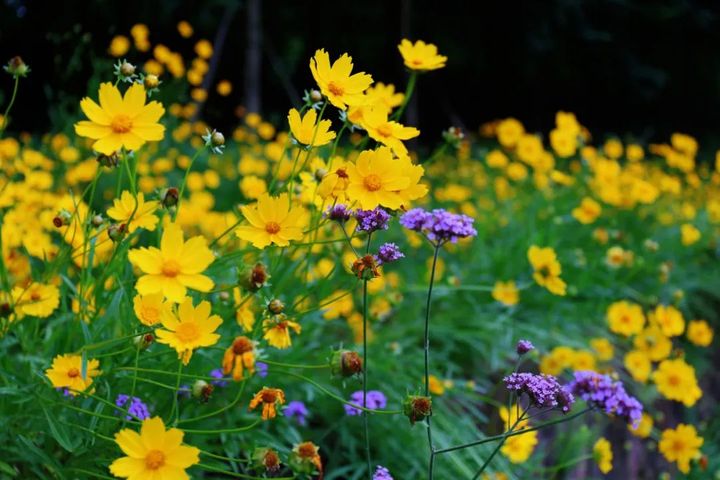 粉色的山桃草、黃色的金雞菊…