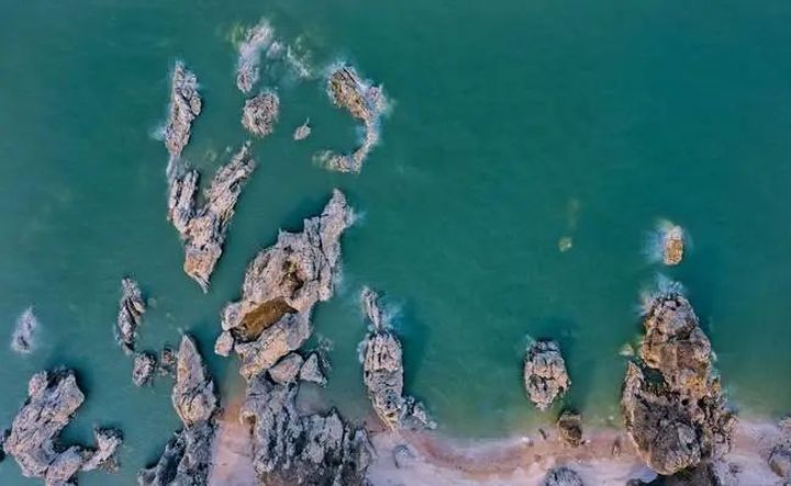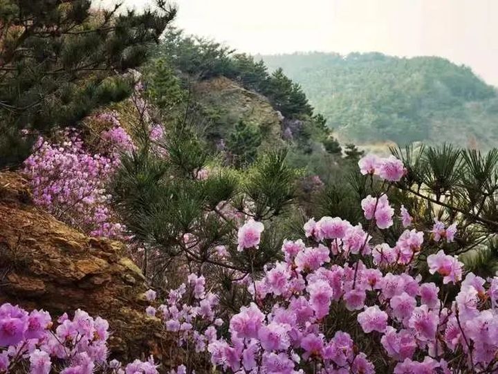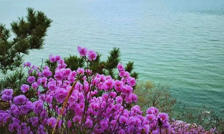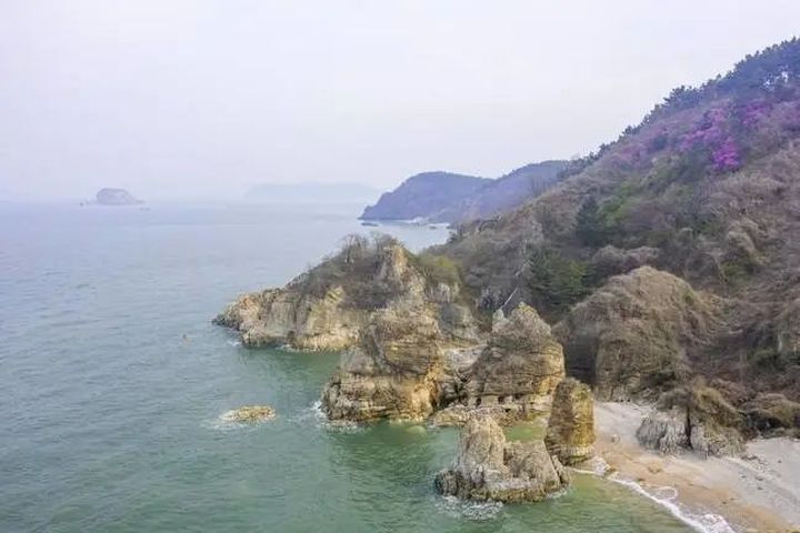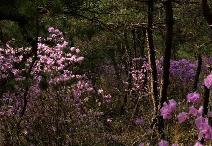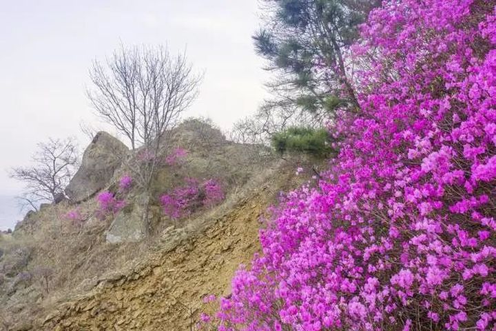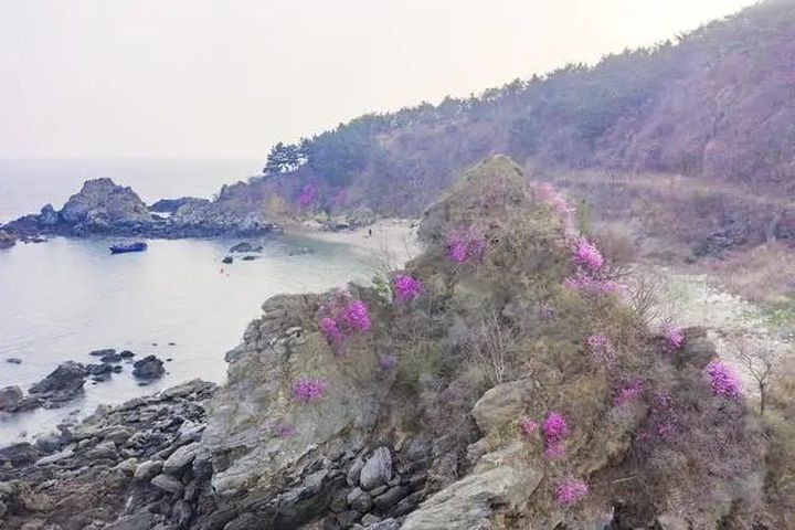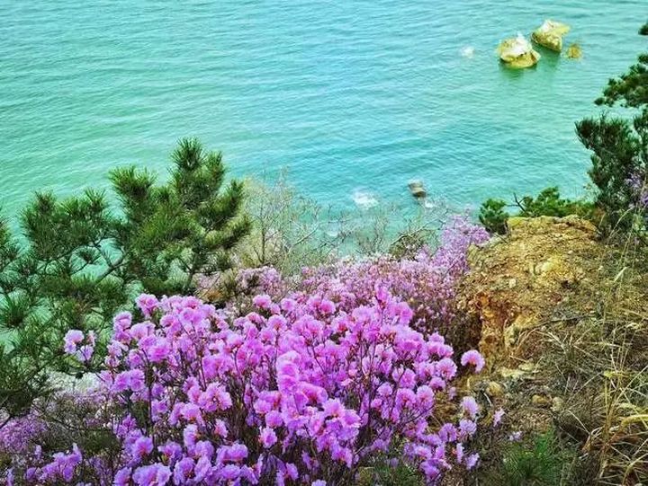 受海洋氣候影響,映山紅綻放比陸地持續時間更久,漫步海邊石林,那一望無際映山紅映入眼簾,姹紫嫣紅,如入仙境一般。山崖上、樹林中野菜遍地,仿佛置身天然植物園。