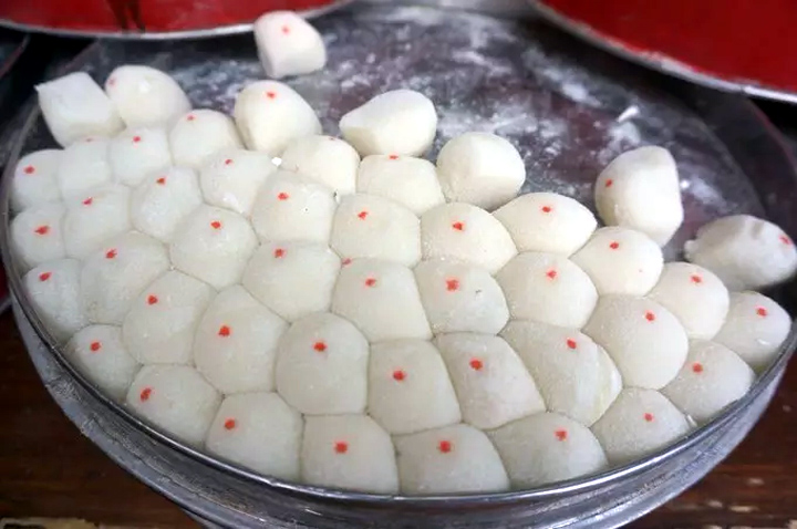 麻花、手工糍粑、古鎮雞雜、烤豬蹄、串串、豆干、吐氣的冰淇淋等各類傳統甜點小吃。
