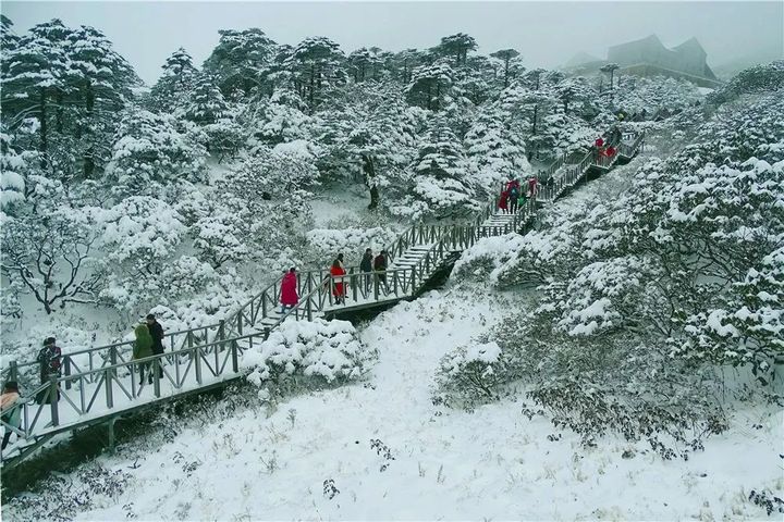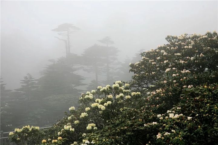 雨霧朦朧時,又堪當一幅“此景只應天上有”的瓊宇仙境。