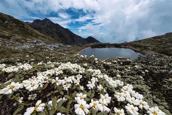 在玉局峰與龍泉峰的交接處,海拔近4000公尺,鑲嵌著被稱為“山巔之湖”的洗馬潭。滿山滿坡的杜鵑花將沿著棧道、觀景台,一路伸到遊人眼前。