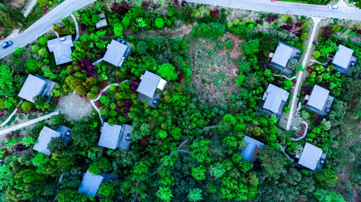 九龍山舍包含114個床位,共有66間,是32棟坐落于森林間的獨棟木屋酒店。