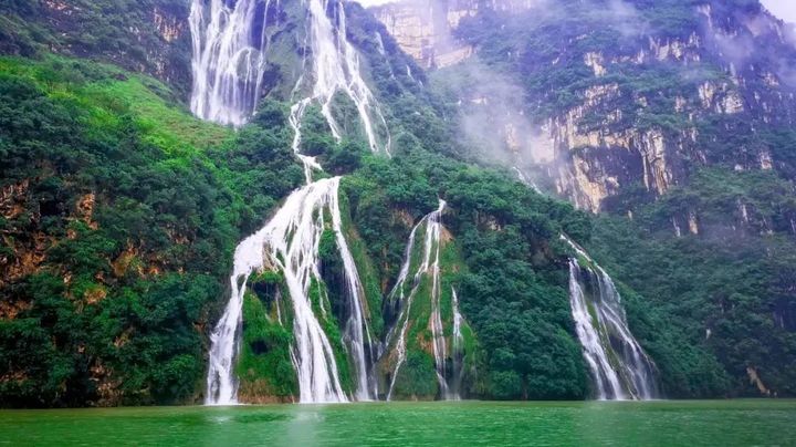 乘船遊於峽谷中,船移景異,空間宏偉開闊,景觀層次豐富,山體變化多端。絕壁的形態勾畫成一幅綿延2000公尺的岩壁天然水墨畫,宛如人在畫中遊,震撼非常。