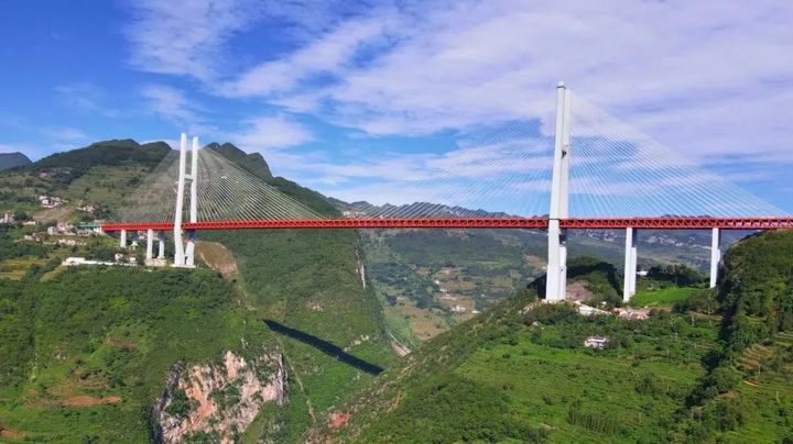 北盤江大橋作為一座懸索橋,在2003年建成之時是當時同類橋中的中國大陸第一亞洲第二。全長388公尺,距離水面486公尺,橫亙於兩山之間,足以見其之宏偉峻險。