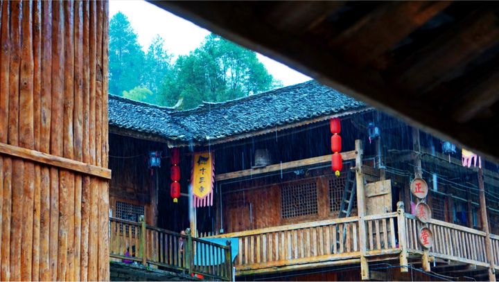 四周古樸的吊腳樓群