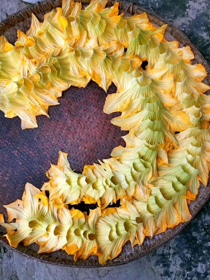 剛開的南瓜花包上糯米粉