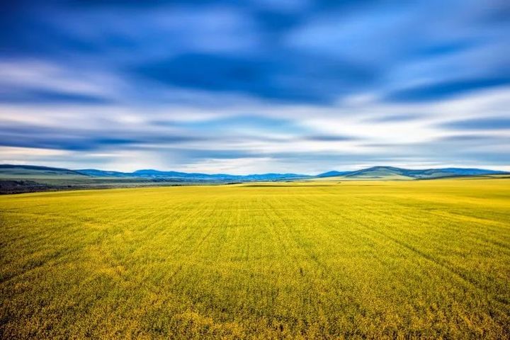 漫山遍野的油菜花田是大自然賜予的至高無上的純色。