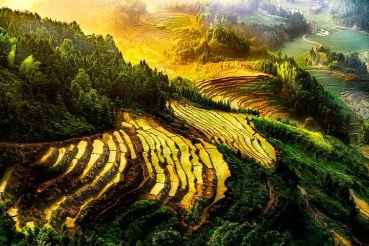 國家4A級風景名勝區—紫鵲界梯田,起源於先秦,盛於宋明,距今已有兩千餘年的歷史,最早為苗、瑤兩族祖先開創。