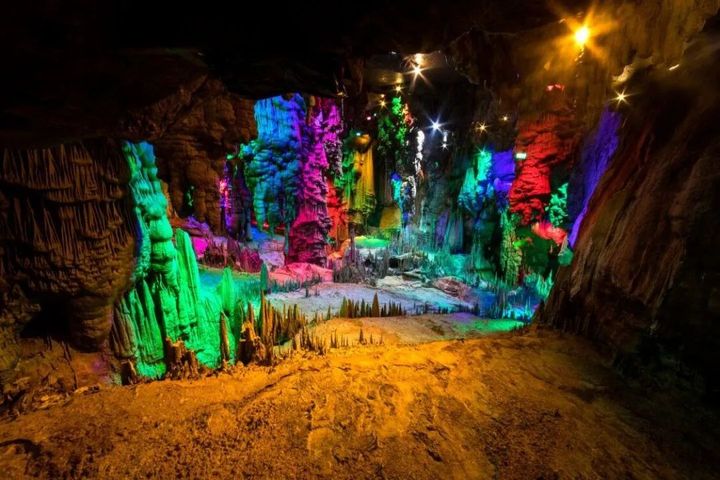 在洞口的時候就可以感受到一陣陣冰涼的冷風從洞穴中吹來,進入洞中之後,迷離夢幻的燈光、清涼舒爽的溫度讓人欣喜。目前遊覽景點主要有一條主洞和三個支洞,主洞最高處80公尺,最寬處40公尺,而洞中最狹窄處僅容許一人通過,非常隱秘。