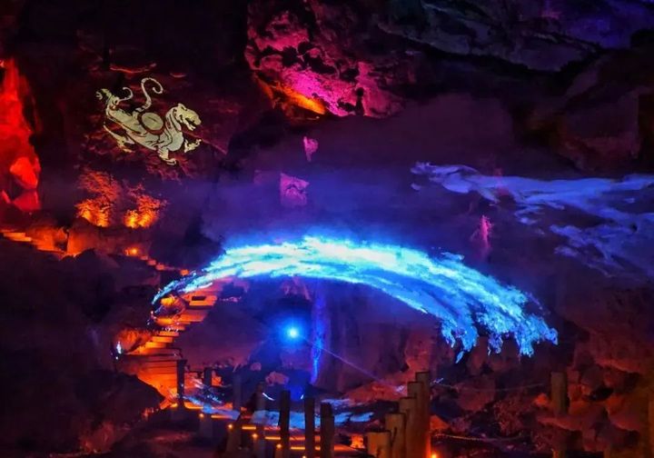 洞口巧生東西峭壁間,洞內上下三層,分佈著“穿越時空”“轉世蓮花”“玄妙星象”等二十多處景點,其中“玄妙星象”為全國獨一無二最大的洞內崖壁穹頂星空;“穿越時空”“寶物神鷹”採用先進的鐳射投影技術,呈現動感震撼場景,屬宜昌罕有。
