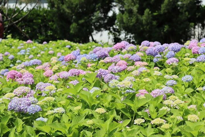 各色多彩的繡球花裝點其中