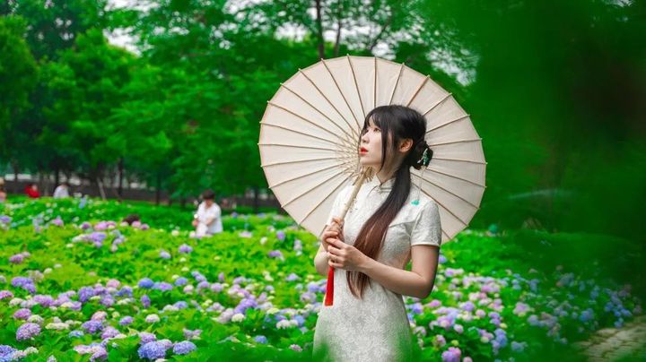 點綴其間的繡球花也自帶幾分仙氣